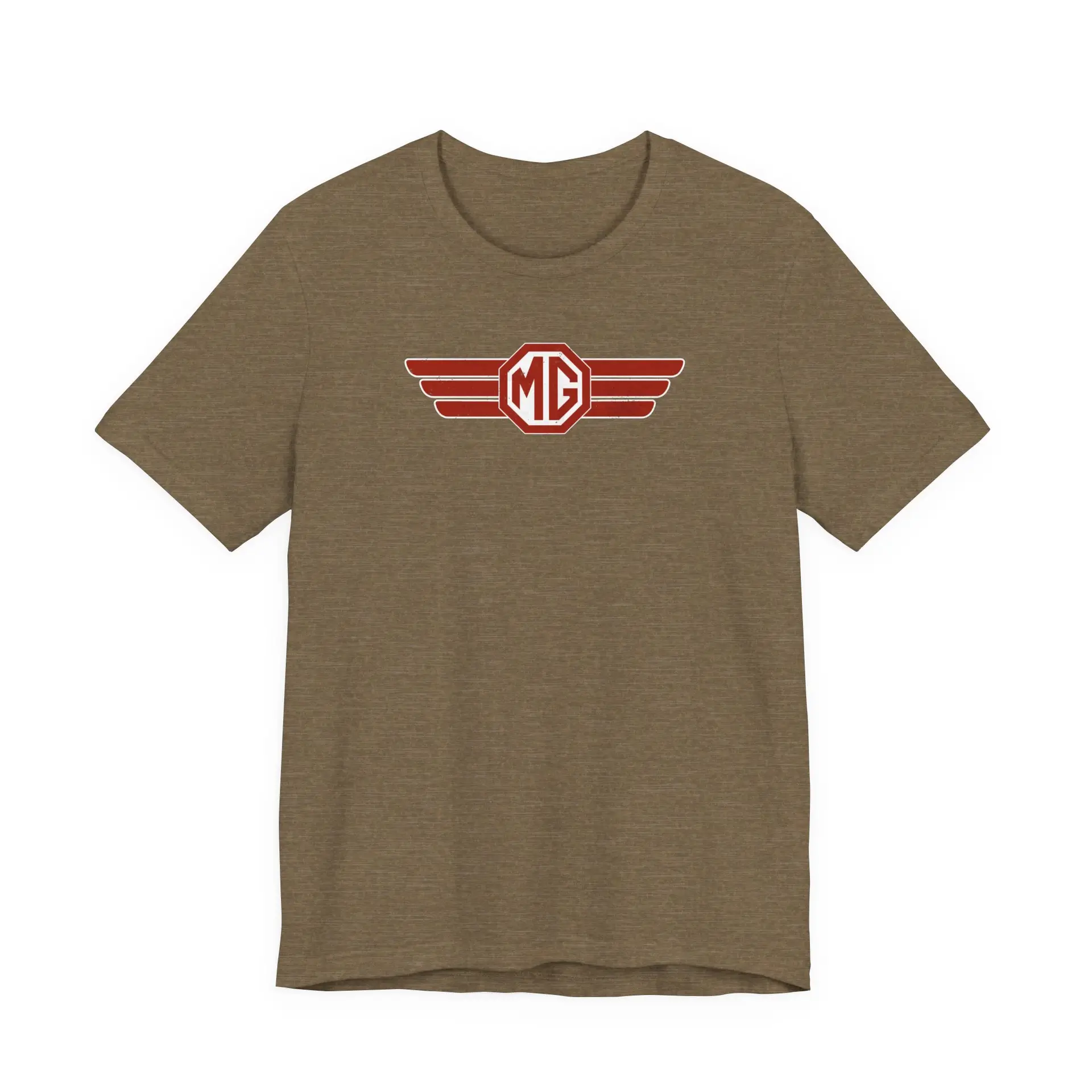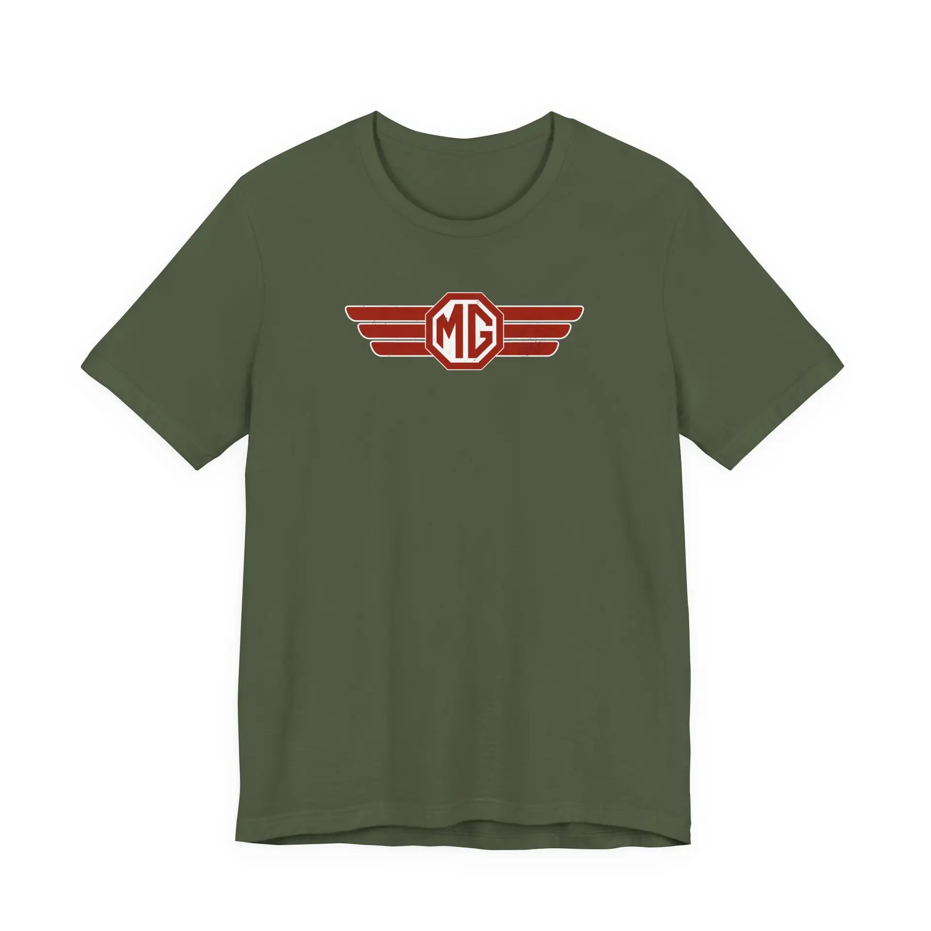 A simple T-Shirt with an art deco style version of the MG Car logo. Perfect for casual wear and car enthusiasts. Ideal for car shows, automotive events, or as a gift for vintage car lovers.