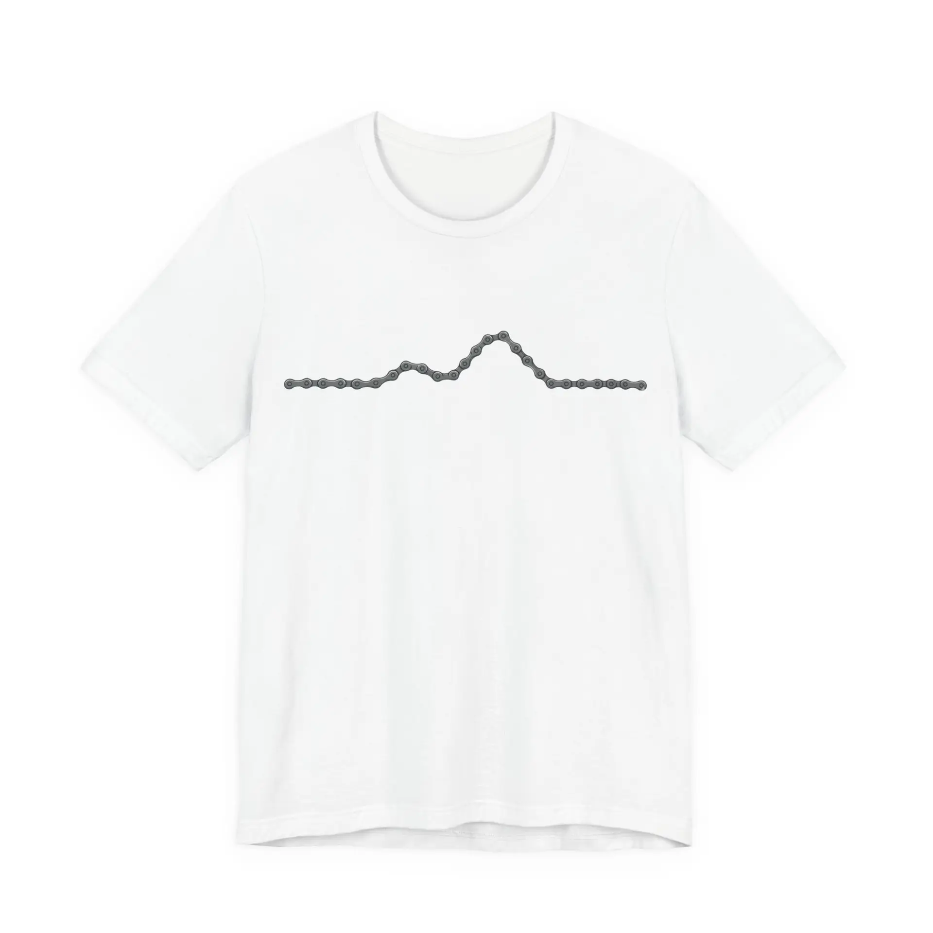 Show your love for cycling with this stylish bicycle chain tee. This unisex jersey t-shirt features a clean, cartoon-style graphic of a dark gray chain against a white background. Perfect for cyclists and casual wear.