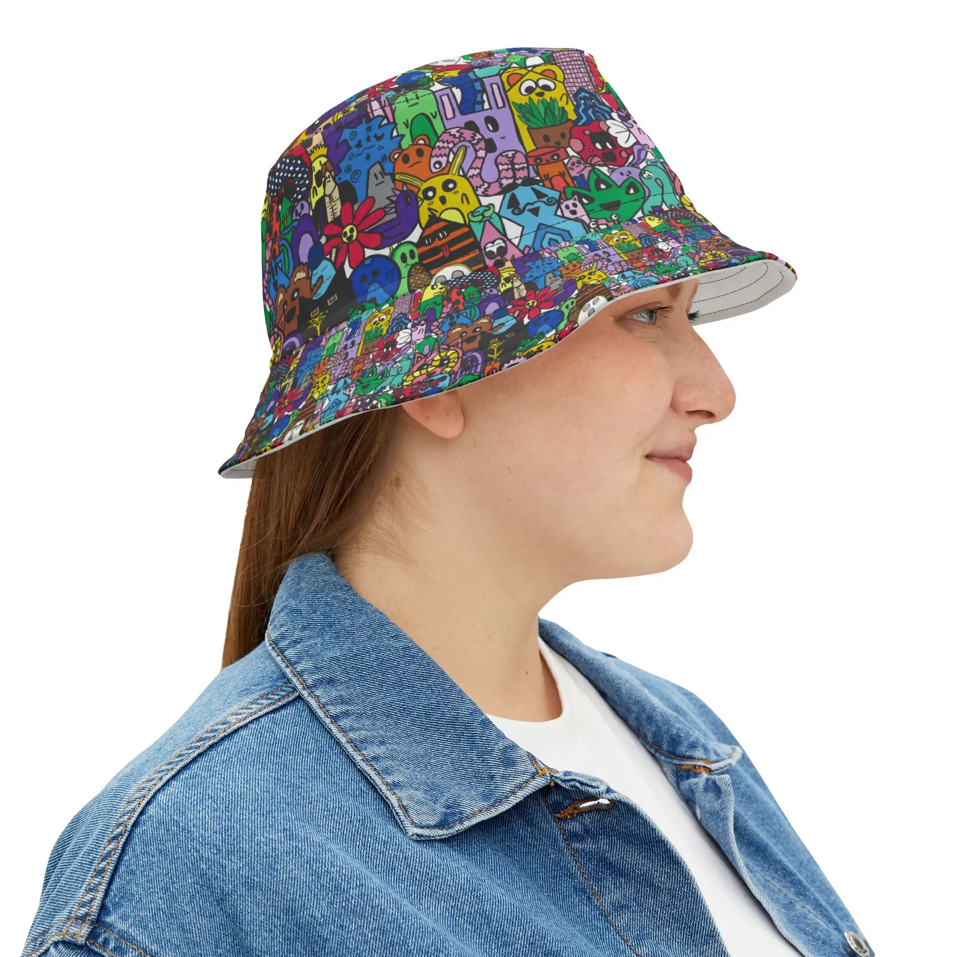 Bucket Hat with Colorful Monster drawing – Drawn By Margot