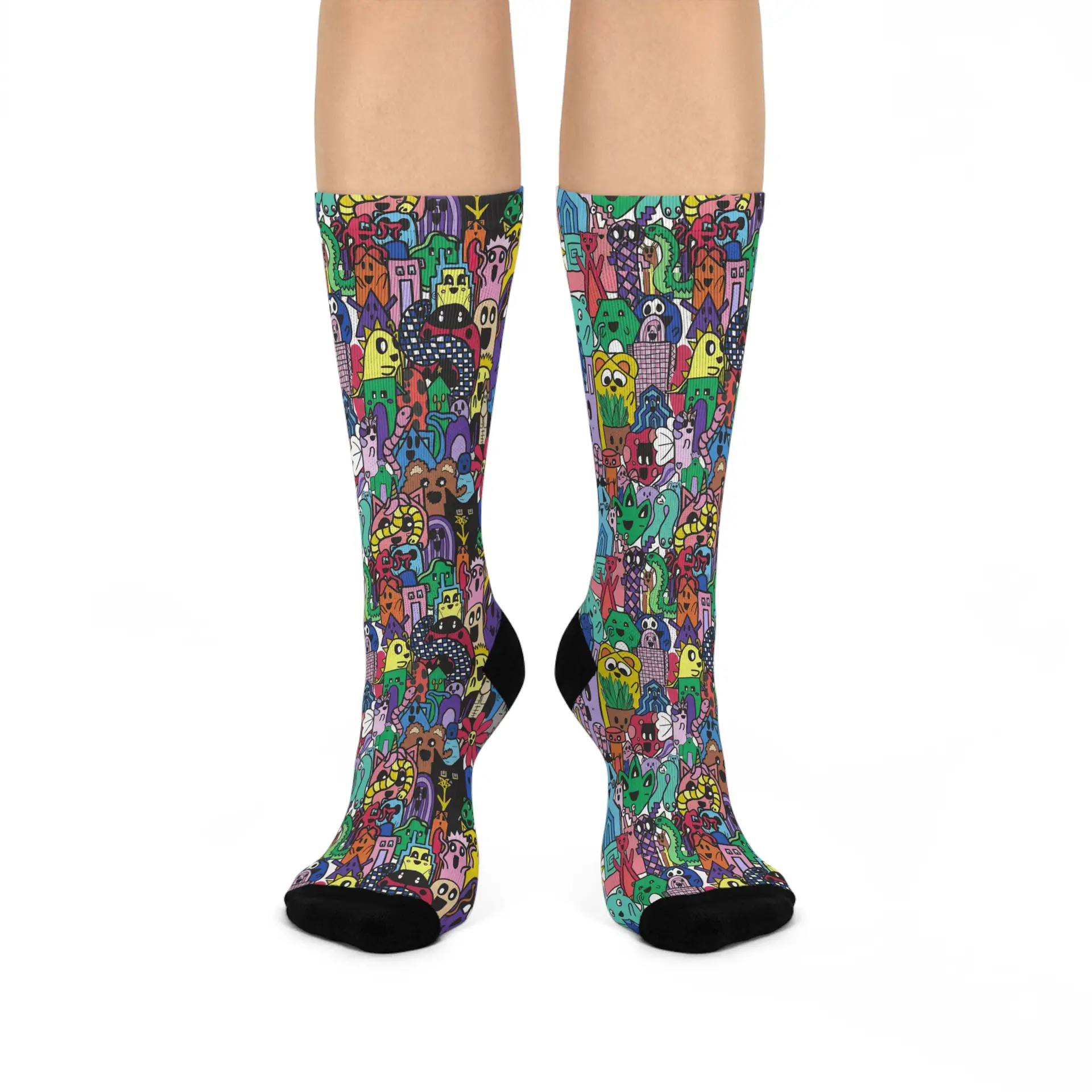 These cushioned DTG crew socks are a one-size style designed with both function and appearance in mind. With the fully cushioned heel-to-toe, these socks provide superior comfort, while the DTG print process allows for ultra-crisp, crease-free printing. Composed of 73% polyester, 18% nylon, 6% spandex, and 3% cotton, these socks are an elevated alternative to the typical sublimation sock and provide a clean, comfortable base for your all-over print designs.