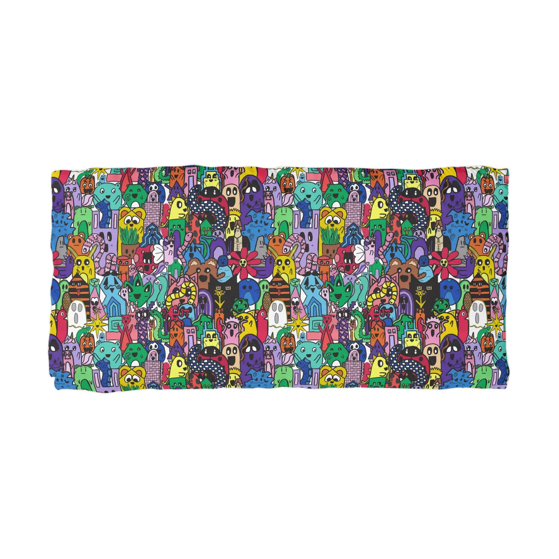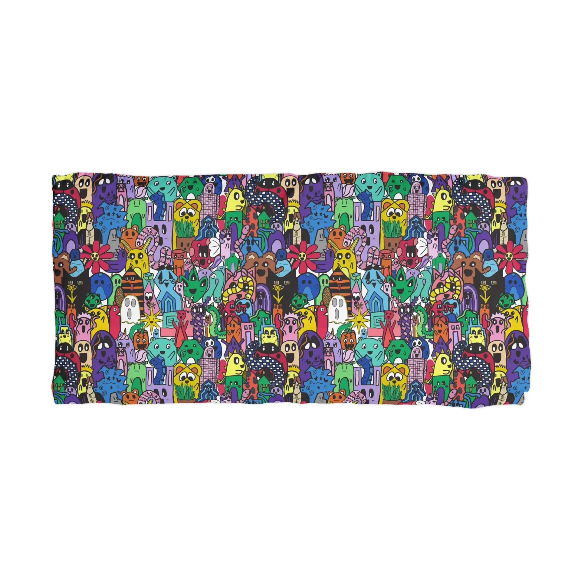 Bright, playful, and full of character — this microfiber pillowcase brings a joyful splash of color to your bedroom or couch. The all-over, double-sided print features a dense collage of quirky, cartoon-like monsters that peek out from every angle. Lightweight and silky-smooth to the touch, the fabric feels cool against the skin and dries quickly after washing. The 3.25″ hemmed cuff gives the edge a neat finish while keeping the print uninterrupted across the surface. Toss it on a favorite pillow to brighten a reading nook, add a dash of personality to a guest room, or let it anchor a lively, eclectic bedding set.