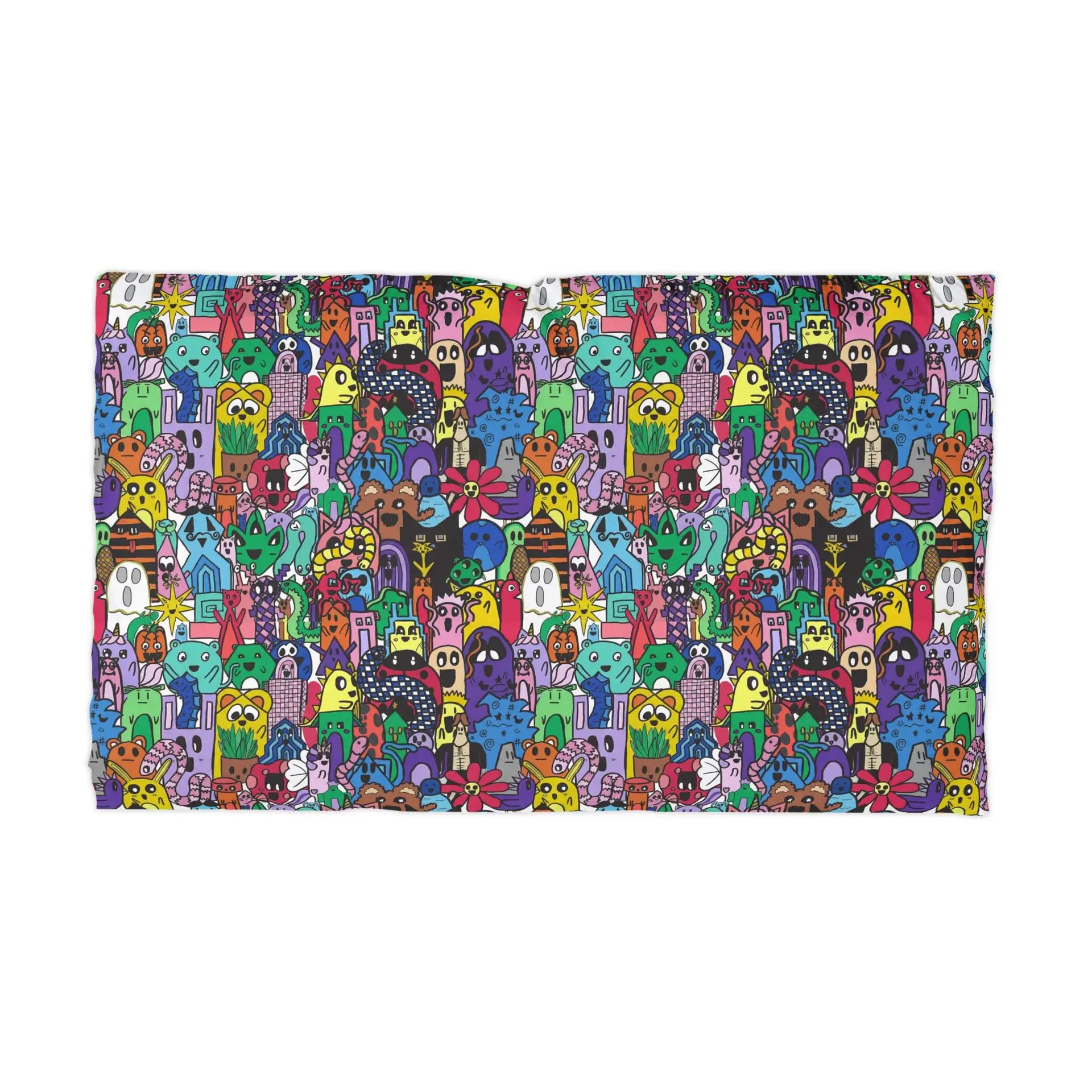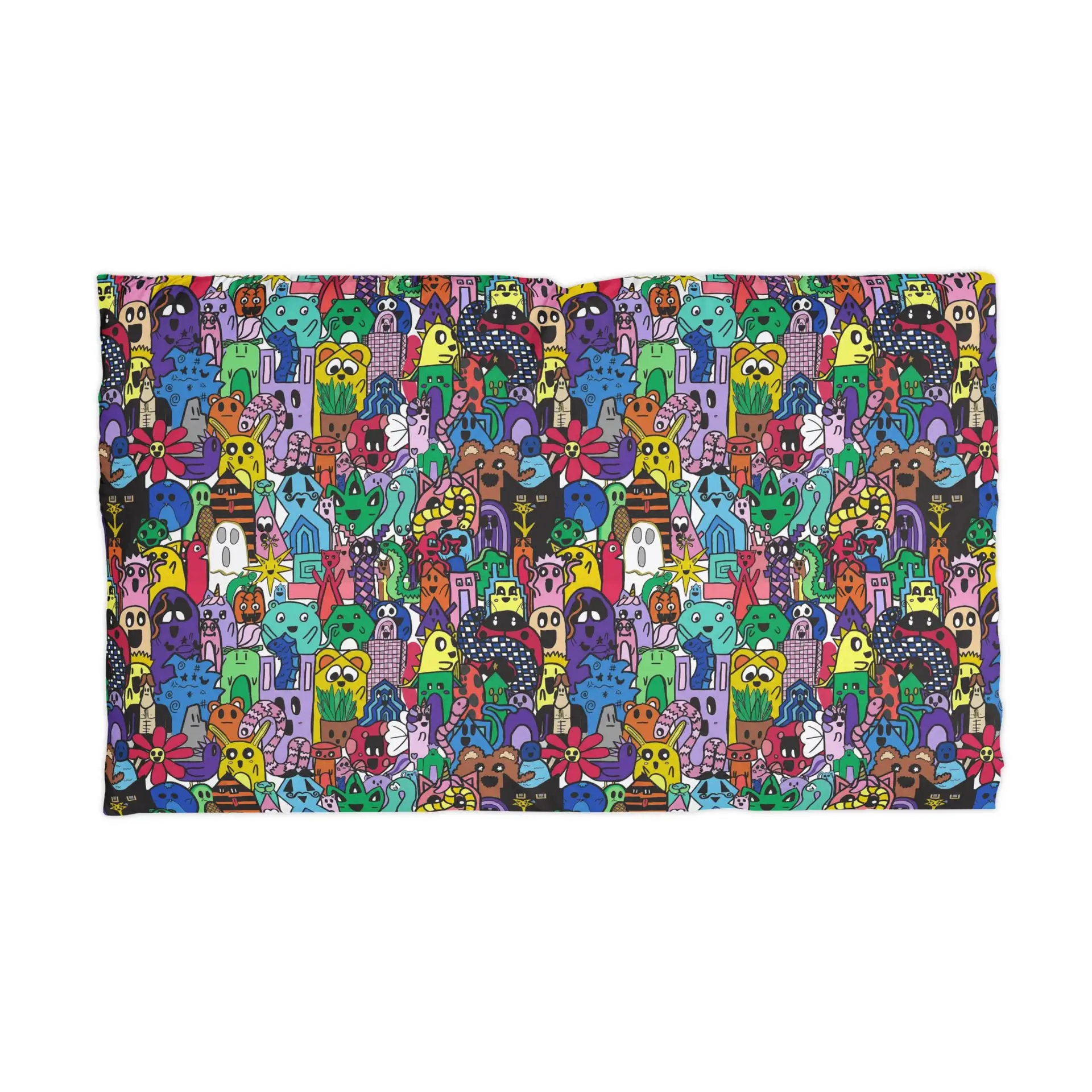Doodle Monsters Microfiber Pillowcase — Colorful Cartoon Creature Print – drawn by Margot