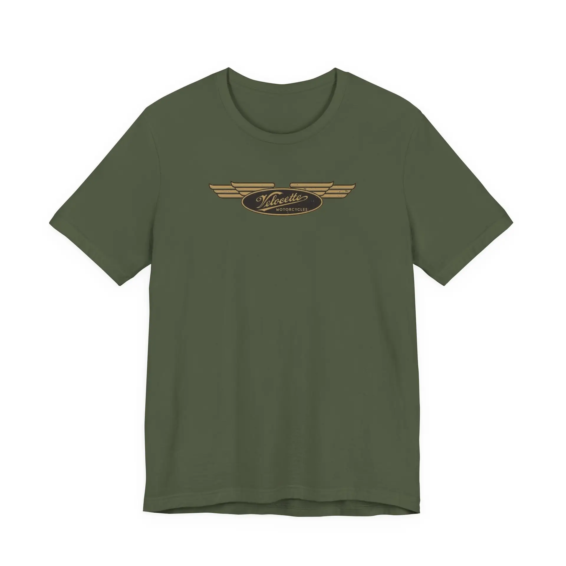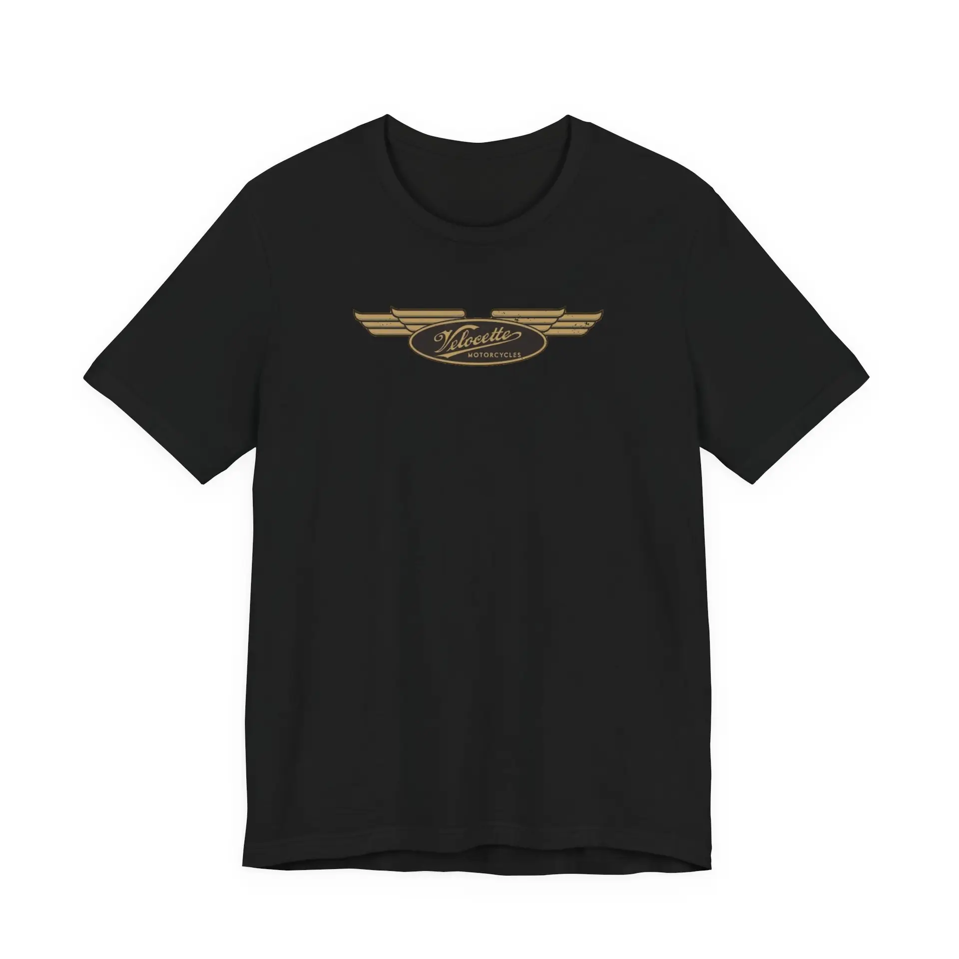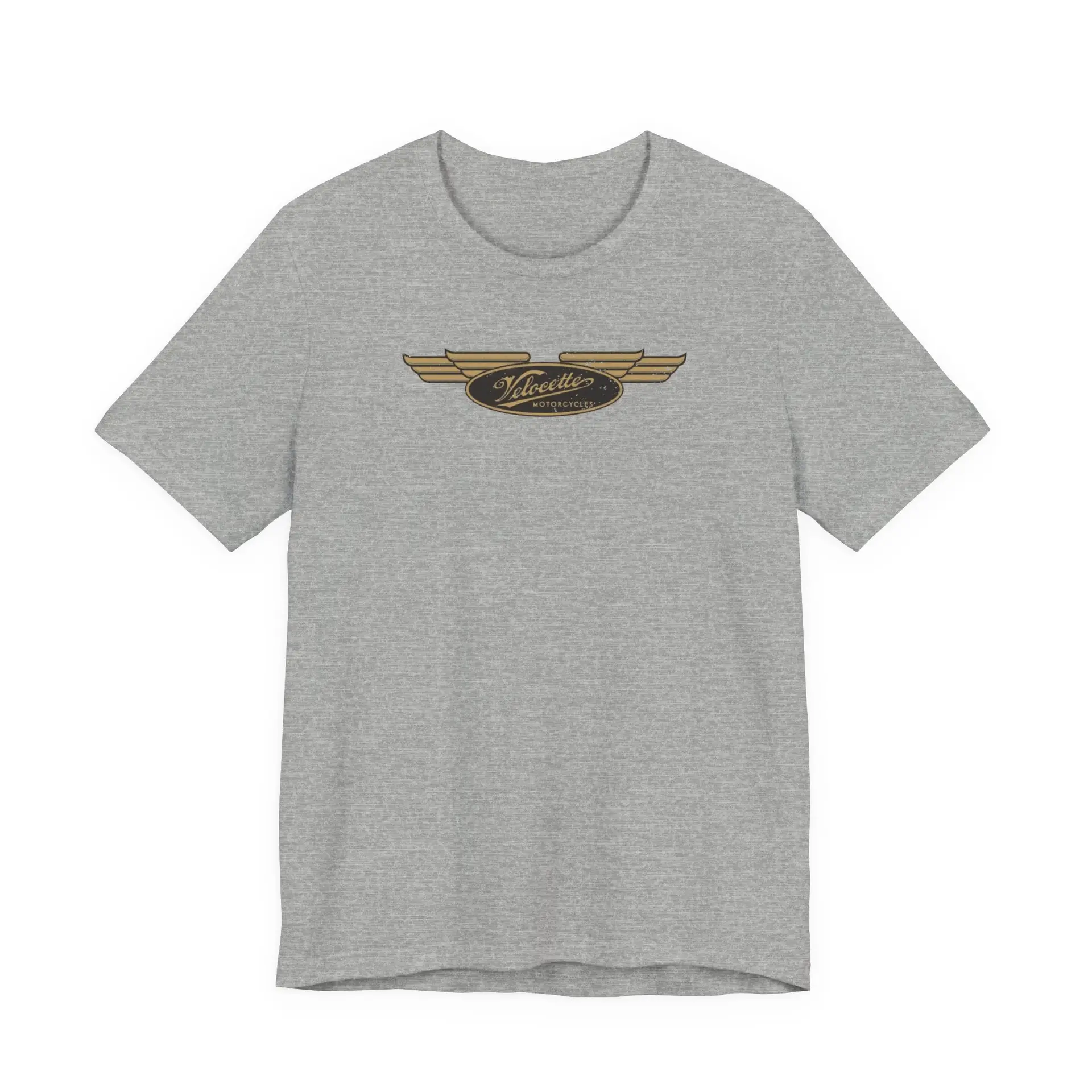A simple T-Shirt with an art deco style distressed  version of the Velocette Motorcycle logo. Perfect for casual wear and motorbike enthusiasts.