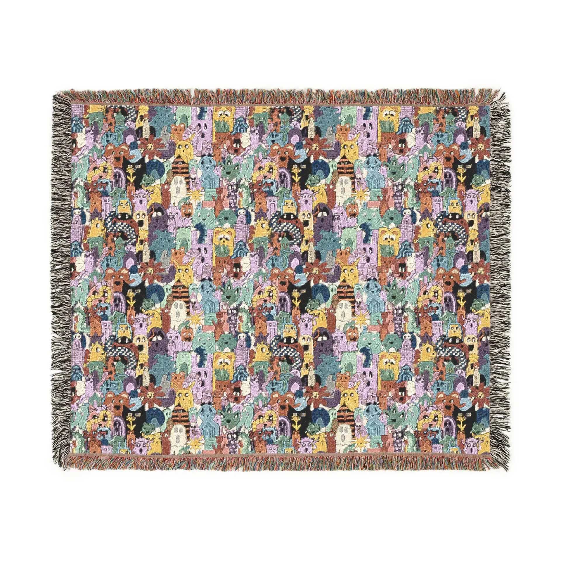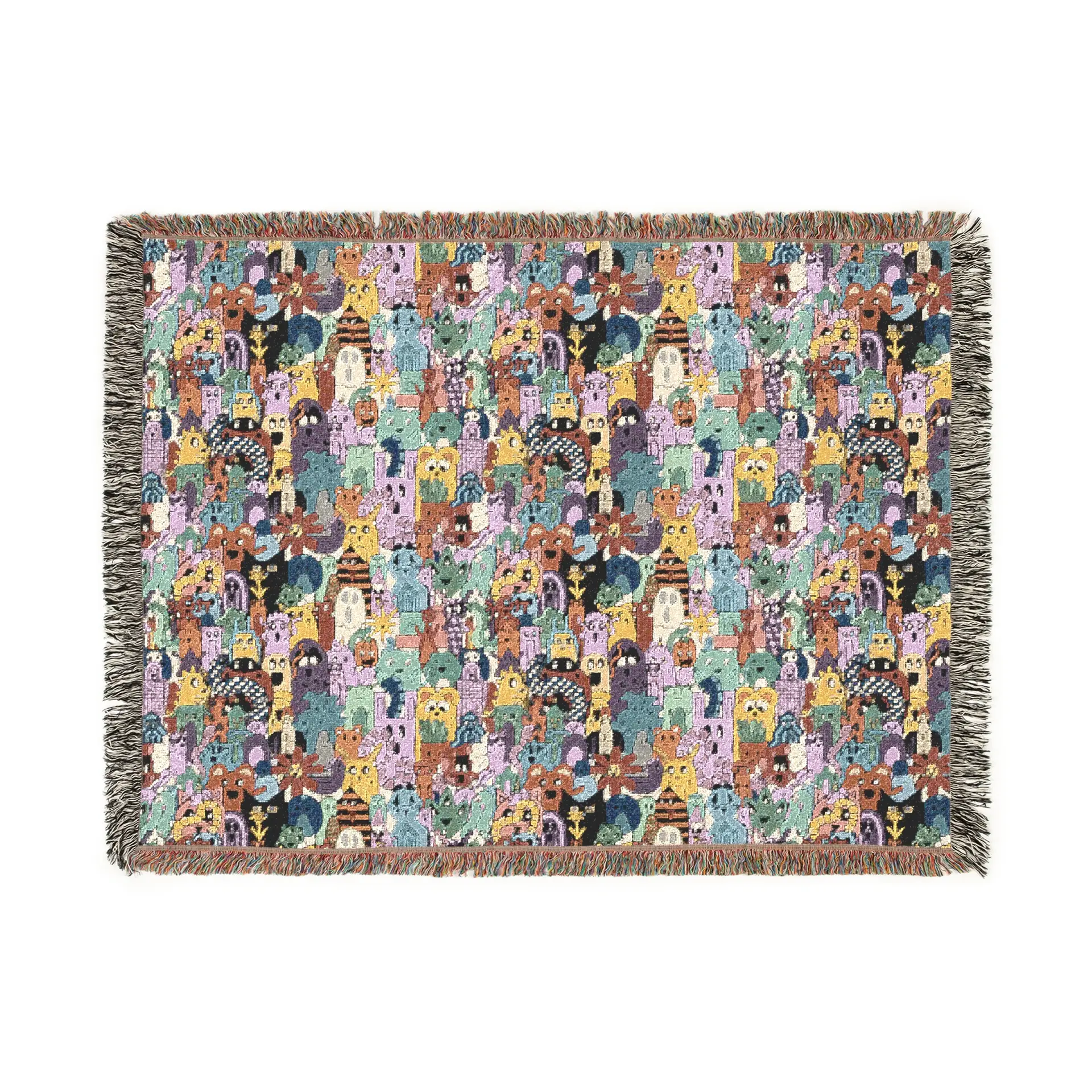 This woven blanket brings rich, handloom character to your favorite cozy corners. The tightly spun 100% cotton weave captures intricate, mosaic-like patterns with a tactile, slightly raised texture and colorful fringed edges that frame the design. Choose the Photo variant if your piece relies on delicate color shifts and photographic detail, or pick the Artwork variant to keep bold color blocks sharp and defined. Lightweight but substantial, it layers easily over sofas, footstools, or bed ends and ages gracefully as the threads soften with gentle use — a warm, lived-in accent that invites you to slow down and linger in the room.